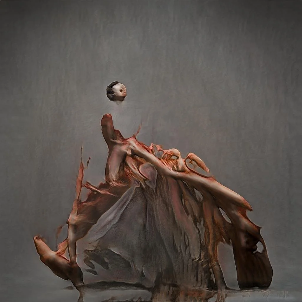 Figuratively Speaking aims to co-mingle the digital and analogue through machine learning and artificial intelligence, critiquing the relevance and cultural significance of painting in a world driven by a proliferation of digital visual culture. The resulting works reflect my fascination in trans-humanism and post-human ideologies evident in the way technology can disrupt and enhance our physiological and sensory structures. This show explores the impacts of scientific and technological advancements on the human condition; the augmentation of our physical bodies a metaphor for the alteration of sensory reception and emotional and cognitive capacities. The biomorphic figures and fragments in the paintings live in a liminal non-space, with no particular time or place. The natural world, the synthetic and the human all converge to form an alternative future in which scientific progression ultimately blends all ecosystems together into a singularity.